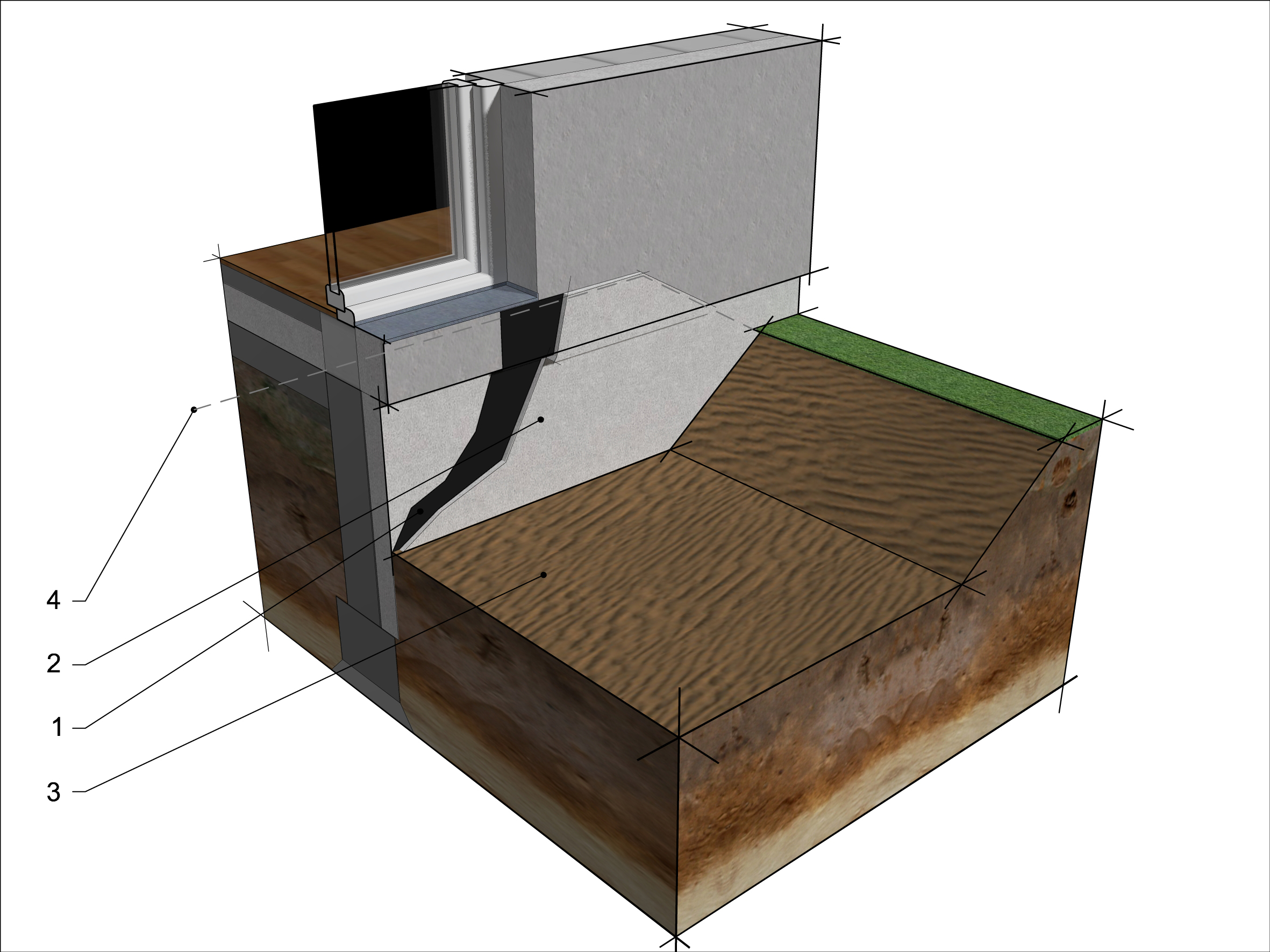 2. Polistyren ekstrudowany zapewniający dylatację od muru oraz osłonę mechaniczną izolacji przeciwwilgociowej